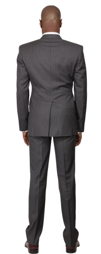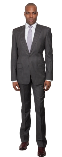 Super 110s medium gray stripe. The standard bearer of stripe suits, this understated pinstripe is the perfect addition to your office rotation. It pairs well with numerous shirt & tie combinations. Kali is a bicoastal model and actor.